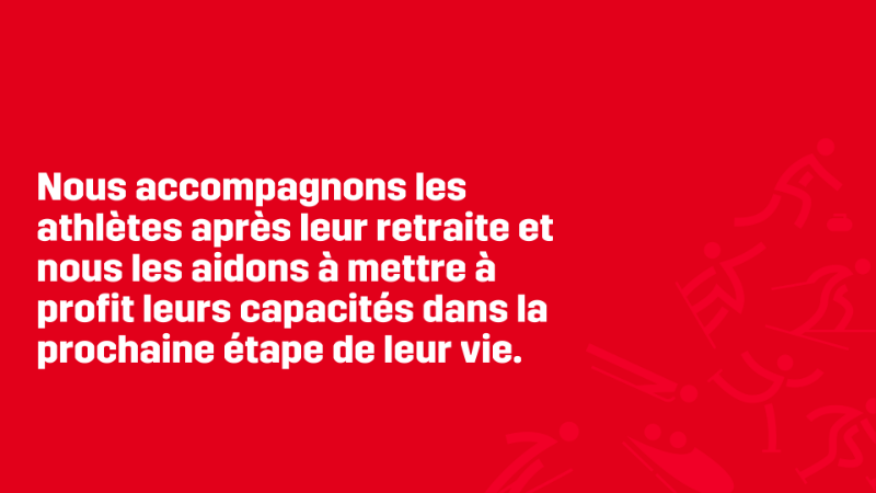 Que tu sois encore au milieu de ta carrière, sur le point de prendre ta retraite ou déjà dans l'après-carrière, nous te soutenons. Différents programmes, conseils et réseaux sont à ta disposition pour te permettre d'organiser ton avenir de manière individuelle et durable. Avec une Swiss Olympic Card (Elite, Or, Argent ou Bronze), tu profites de nos services non seulement pendant ta période active, mais aussi jusqu'à deux ans après ta retraite.