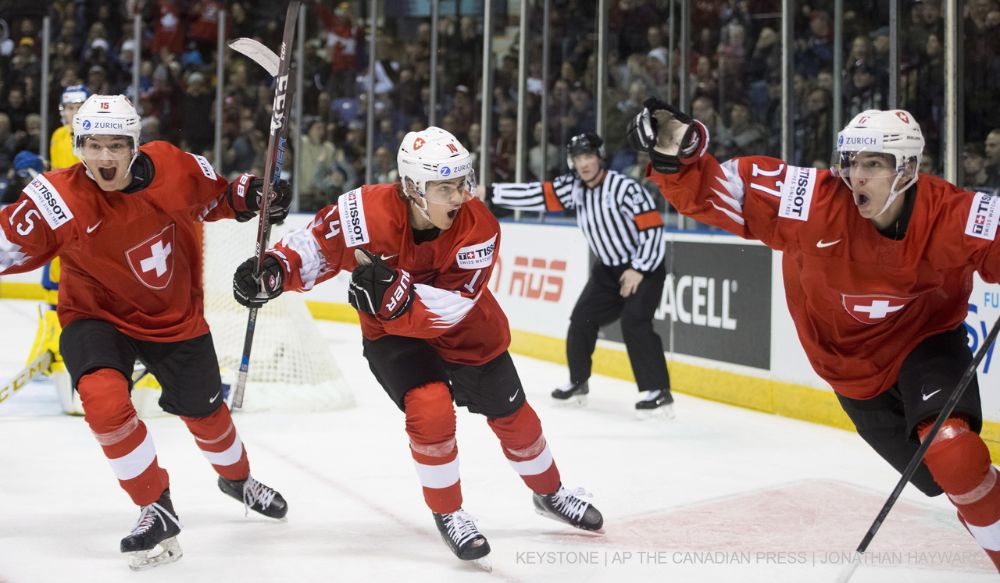 En route vers les sommets: Luca Wyss (à d.) marque le 2-0 contre la grande Suède lors du Championnat du monde junior 2019 – et rêve de NHL.