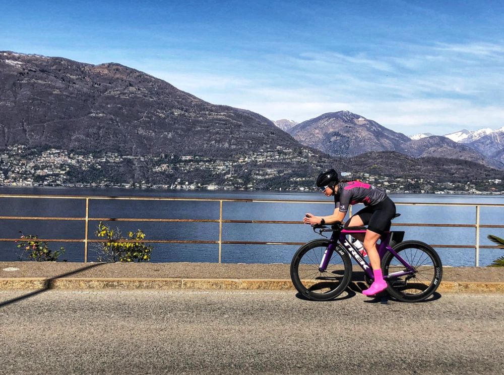 Sarah Frieden durant un entraînement de vélo.