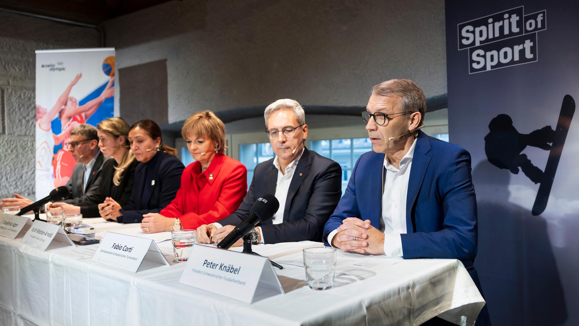 Ruth Metzler-Arnold (présidente de Swiss Olympic), Andrea Siviero (président de Swiss Basketball), Luana Bergamin (directrice de SwissTopSport), Conchita Jäger (directrice de Swiss Paralympic), Fabio Corti (président de la Fédération suisse de gymnastique) et Peter Knäbel (président de l’Association Suisse de Football) ont démontré lors de la conférence de presse l’importance de la SSR pour leur fédération, leurs clubs et leurs athlètes.